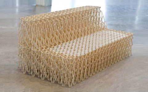O designer japonês Yuya Ushida passou três meses de sua vida construindo um sofá com oito mil palitos de madeira de quatro tamanhos diferentes e argolas de metal. E este sofá que mais parece um banco, pois é feito de madeira, muda de tamanho conforme a necessidade.